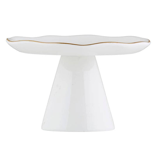 White Pedestal Tray with Gold-Small