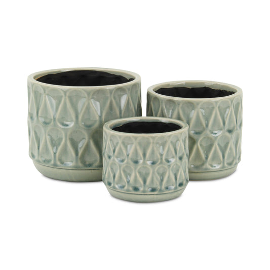 Parlora Crossed Diagonal Pattern Sage Ceramic Pot-6"