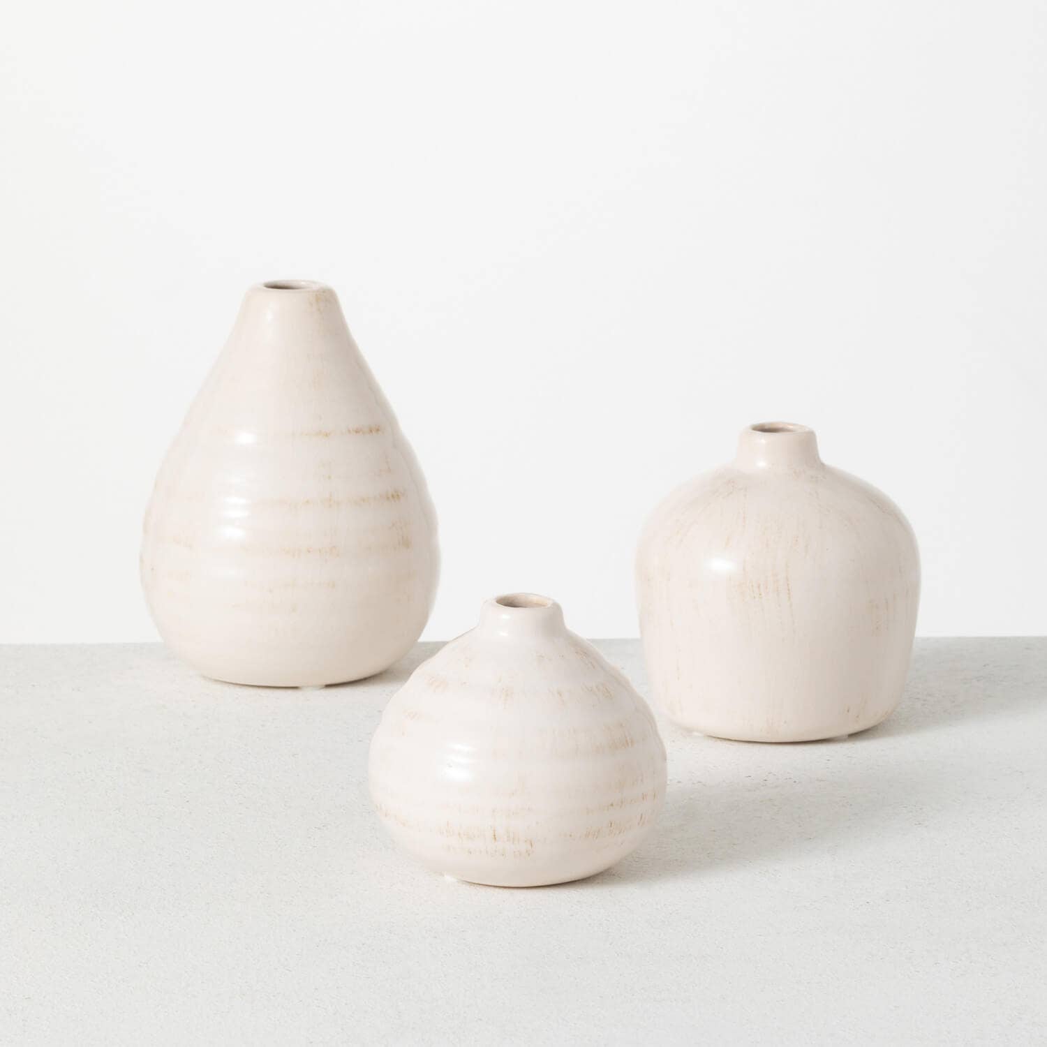 This ceramic vase makes the perfect vignette in any setting. Simply place a few of your favorite stems in them and watch them really shine in a room. With 3 different shapes, you'll be sure to find the perfect vase. Or pair 3 vases of varying heights to create a well balanced decor look to any space. -Dimensions: Small 4.5"L x4.5"W x6" Medium 4"L x4"W x4.5" Large 4"L x4"W x3.75" -